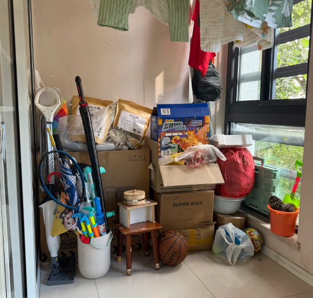 29.堆积在阳台的快递箱、快递盒子、各种杂物